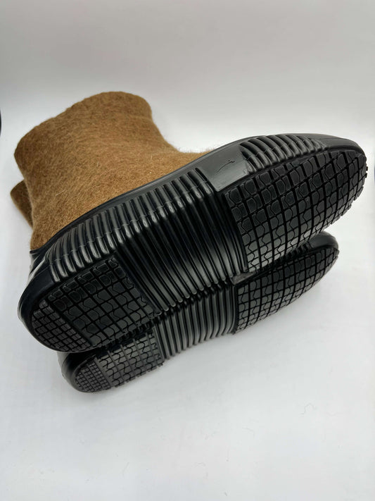 Felted wool boots for indoor use, paired with all-weather, rubber overshoes for the outdoors.